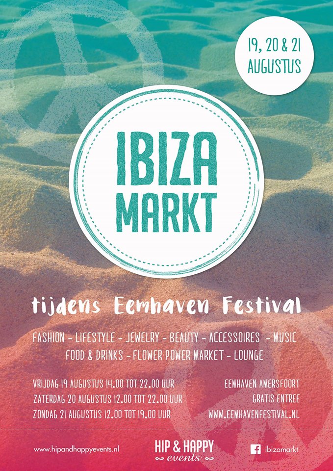 Ibiza markt is onderdeel van het Eemhaven Festival wat plaats vindt van 19 t/m 21 augustus aan de Eemhaven in Amersfoort. Vrijdag 19-8 14.00 tot 22.00 Zaterdag 20-8 12.00 tot 22.00 Het Eemhaven Festival is een gratis toegankelijk en 3-daags spektakel vol muziek, cultuur, theater, eten, drinken en vooral véél doe-activiteiten, die zich afspelen in- [...]